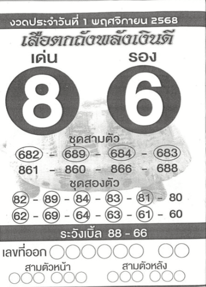 แนวทางหวยในตำนาน ที่มีมาแล้วยาวนาน เป็นใบแนวทางหวยไทยที่หลาย ๆ คนต้องรู้จัก และคุ้น ๆ แน่นอน หวยเสือตกถัง ใบแนวทางหวยไทยเจ้าดังที่มาในรูปแบบเลข 2 ตัวตรง และเลข 3 ตัวตรง ครบเซตให้แบบจัดเต็ม มีมากมายหลากหลายตัวให้ได้เลือกดู เลือกพิจารณากัน ซึ่งต้องบอกเลยว่า เสือตกถัง เขาเป็นหนังสือหวยนะครับ เลยจะปล่อยมาให้ดูแบบรวดเร็วทันใจ ใครที่มองหาแนวทางหวยงวดวันที่ 1 พฤศจิกายน 2568 อยากได้ อยากดูเลขเด็ด ๆ เด่น ๆ แบบก่อนใคร แนะนำต้องมาดูเลข เสือตกถังพลังเงินดี เลยครับ