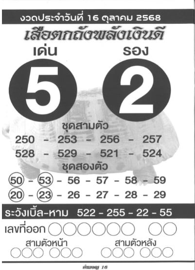 แนวทางหวยในตำนาน ที่มีมาแล้วยาวนาน เป็นใบแนวทางหวยไทยที่หลาย ๆ คนต้องรู้จัก และคุ้น ๆ แน่นอน หวยเสือตกถัง ใบแนวทางหวยไทยเจ้าดังที่มาในรูปแบบเลข 2 ตัวตรง และเลข 3 ตัวตรง ครบเซตให้แบบจัดเต็ม มีมากมายหลากหลายตัวให้ได้เลือกดู เลือกพิจารณากัน ซึ่งต้องบอกเลยว่า เสือตกถัง เขาเป็นหนังสือหวยนะครับ เลยจะปล่อยมาให้ดูแบบรวดเร็วทันใจ ใครที่มองหาแนวทางหวยงวดวันที่ 1 พฤศจิกายน 2568 อยากได้ อยากดูเลขเด็ด ๆ เด่น ๆ แบบก่อนใคร แนะนำต้องมาดูเลข เสือตกถังพลังเงินดี เลยครับ