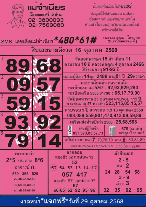 หวยแม่จำเนียร 1/11/68