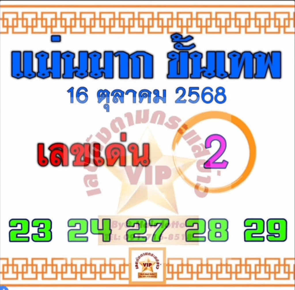 หวยแม่นหวยไทยที่น่าเล่น น่าแทงตามมากที่สุดในช่วงนี้ต้องเป็น แม่นมาก ขั้นเทพ อยู่แล้วครับ โดยที่เขาจะมาในรูปแบบเลขวิ่ง 2 ตัวตรง ที่มาในรูปแบบฉบับไม่มากไม่น้อยเกินไป 5 คู่ กำลังพอเหมาะ พอดี สามารถเลือกตามได้ทั้งหมด หรือจะเลือกเฉพาะตัวที่ชอบก็ได้ ซึ่งก็บอกเลยว่าเจ้านี้ต้องโดน ต้องเข้าเป้าแน่นอน เพราะทำสถิติ และทำให้เอฟซีได้ถูกหวย ได้โชคดี ได้โชครวยกันมาแล้วหลายงวด เป็นที่ชื่นชอบมาก ๆ สำหรับคอหวยไทย งวดนี้ 1 พฤศจิกายน 2568 ใครยังไม่เคยลองตามแนวทาง แม่นมากขั้นเทพงวดนี้ ต้องลองเลยครับผม