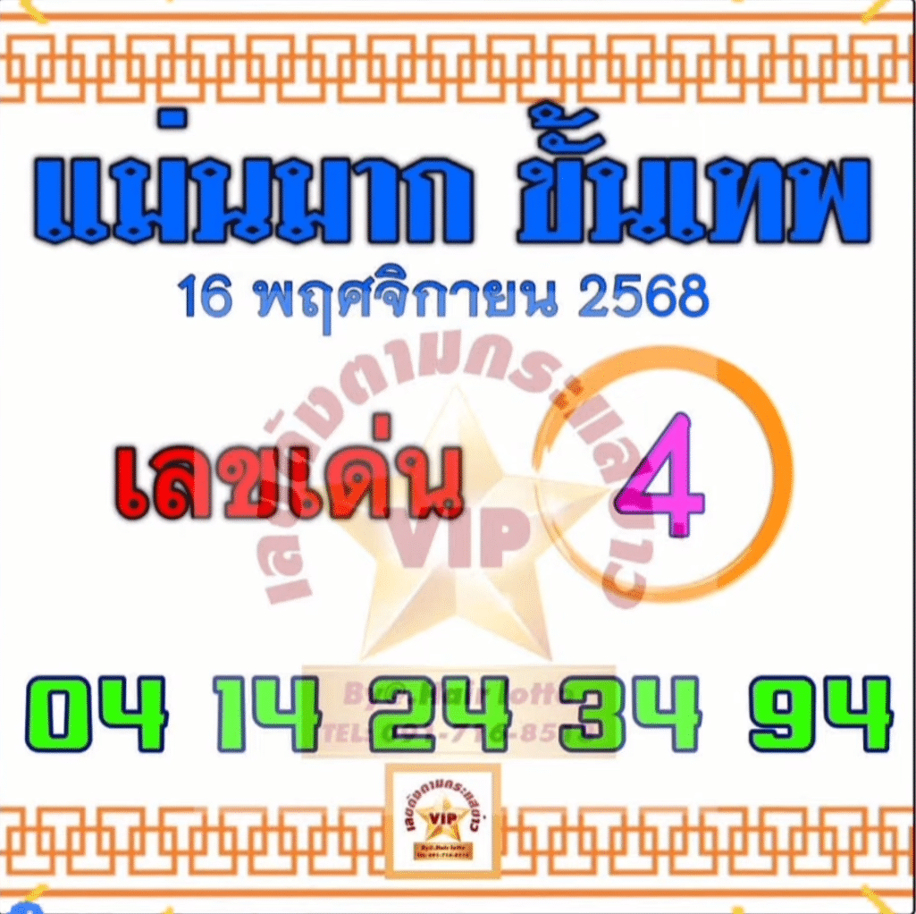 หวยแม่นมากขั้นเทพ 16/11/68