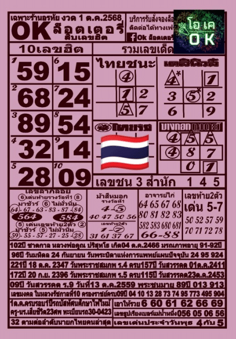ok ล็อตเตอรี่ สิบเลขฮิต งวดนี้ 1 ตุลาคม 2568 ปล่อยมาแบบ 10 คู่ สวย ๆ เด็ด ๆ เช่นเคย บอกเลยว่าเจ้านี้มาแรง และเด็ดเอาเรื่องมาก ๆ ใครที่อยากลุ้นหวย ลุ้นรวย ลองมาลุ้นไปกับ okล็อตเตอรี่ กันเลย และช่วงท้ายนี้ทีมงานขอเพิ่มเติมให้สำหรับคอหวยไทยที่ต้องการรับชมแนวทางเจ้าเด็ด เจ้าดัง หรือแนวทางหวย 3 ตัวตรง ก็สามารถมารับชมได้ที่ baanlivehuay.net เว็บเราอัปเดตแนวทางหวยเด็ดงวดนี้ไว้ให้เรียบร้อยแล้ว รับรองว่าดี รับรองว่าถูกใจคอหวยไทยแน่นอน